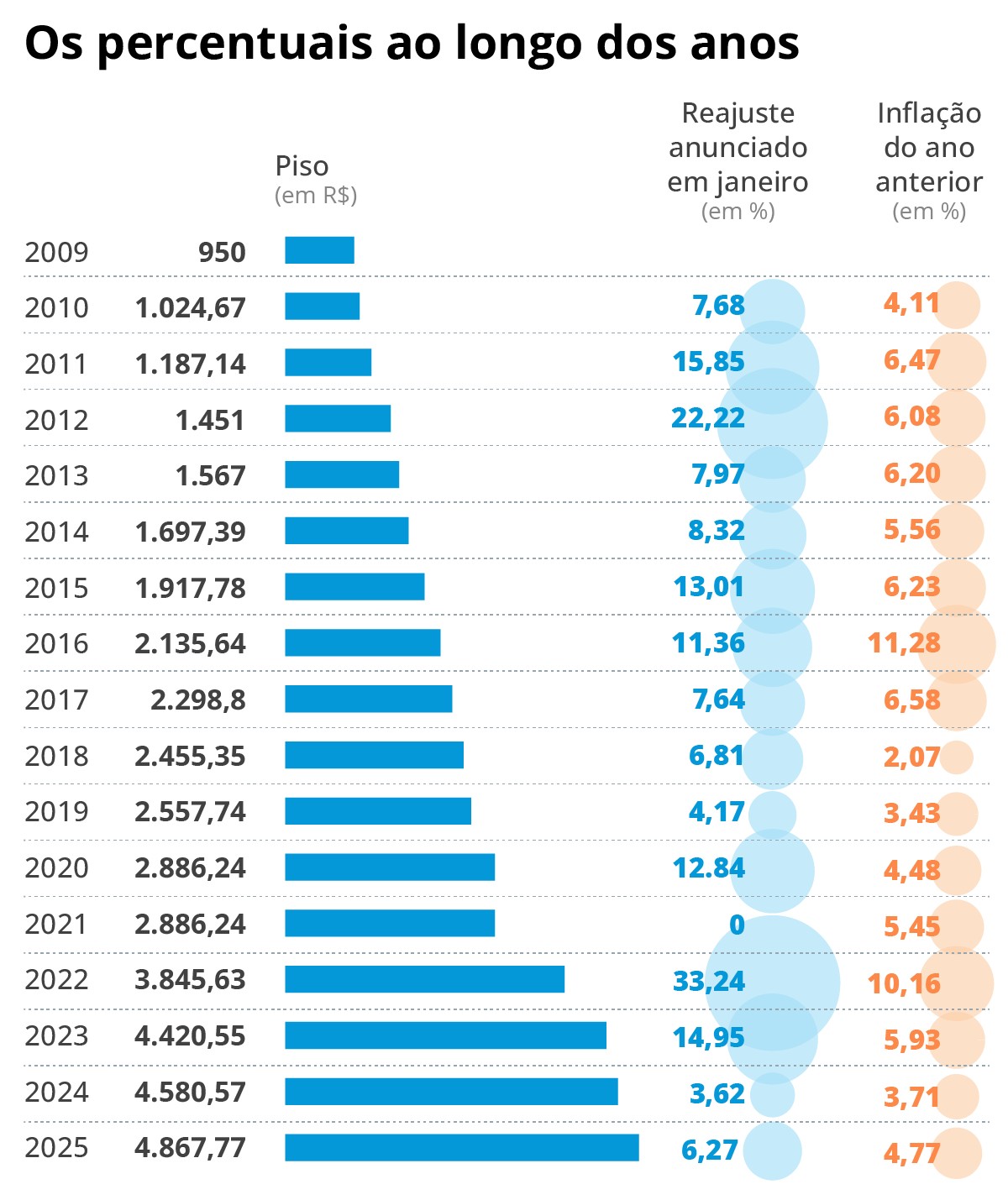 A legislação atual estipula que o piso deve ser reajustado anualmente em janeiro, seguindo o mesmo índice de crescimento do valor mínimo investido por aluno nos anos iniciais do ensino fundamental. Este critério é parte do Fundo de Manutenção e Desenvolvimento da Educação Básica e de Valorização dos Profissionais da Educação (Fundeb), que se destaca como o principal mecanismo financeiro da educação pública no Brasil. Na prática, quando a economia apresenta crescimento, o reajuste é maior; no entanto, em períodos de retração, os docentes podem ficar sem aumentos. Essa oscilação foi especialmente acentuada durante a pandemia, quando em janeiro de 2021 não houve aumento salarial. Já em 2022, o índice alcançou 33%. Assim, a fórmula vigente é considerada inconsistente, prejudicando tanto os professores, que podem não receber sequer a correção inflacionária, quanto os gestores, que enfrentam dificuldades em ajustar seus orçamentos.